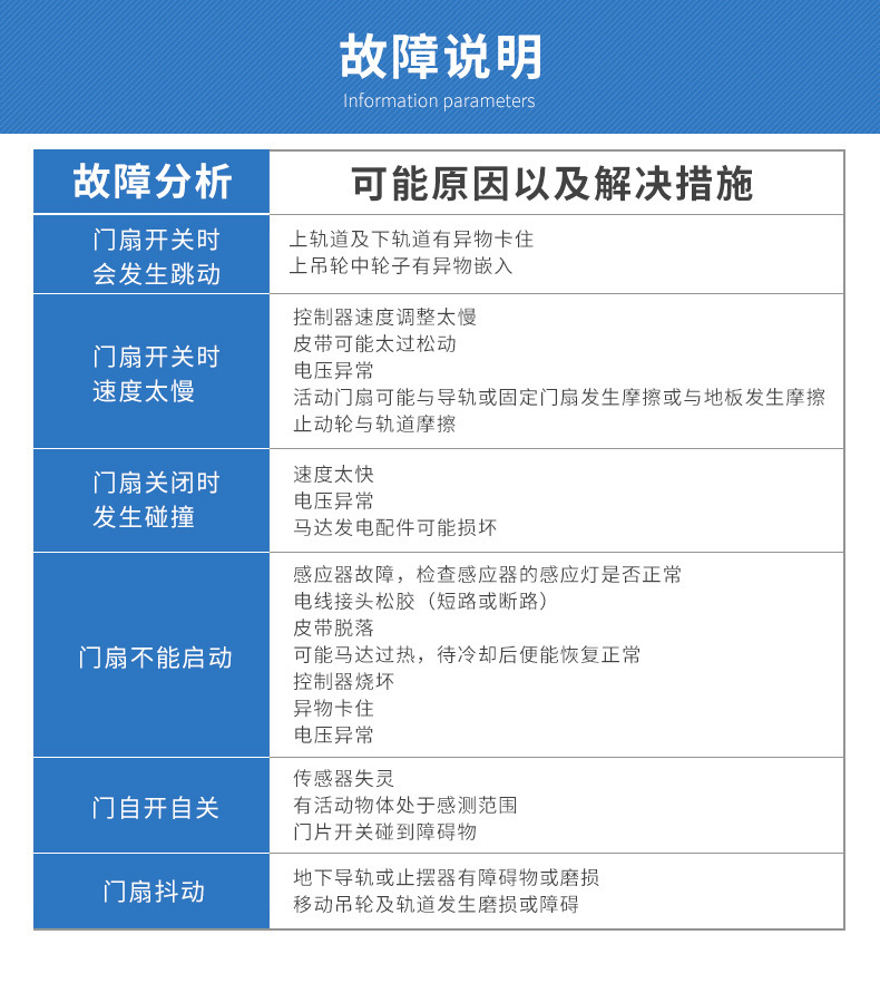 安全性:當門扇處于關門進行中,若遇到障礙物或人體等異常情況時,門扇可當即回轉退回,避免夾人事情或機件損壞現象發作,保證人員進出安全。