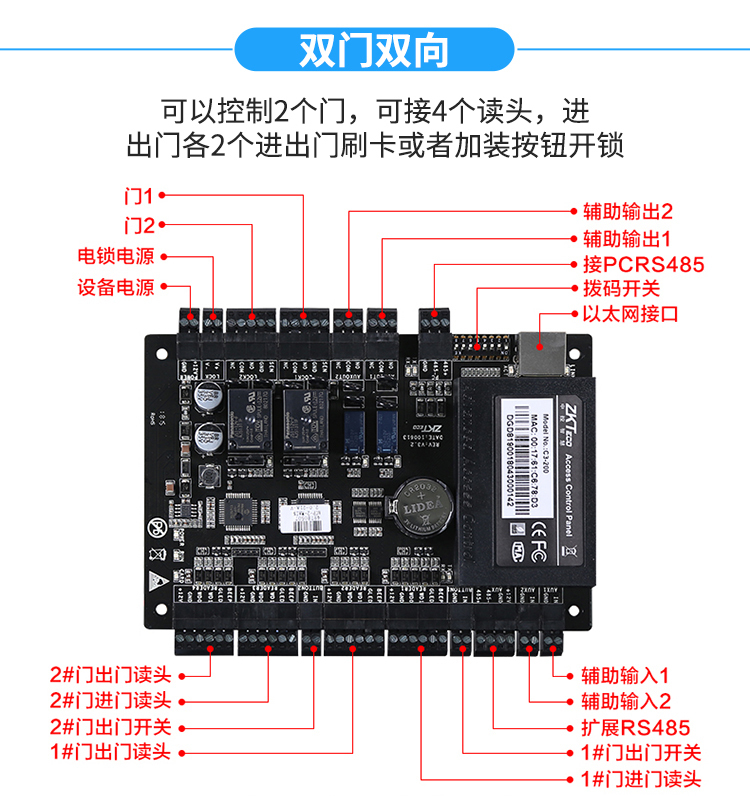 門禁主機:所有人的出入和人員的上傳,包括考勤記錄都是通過門禁主機來控制 的
