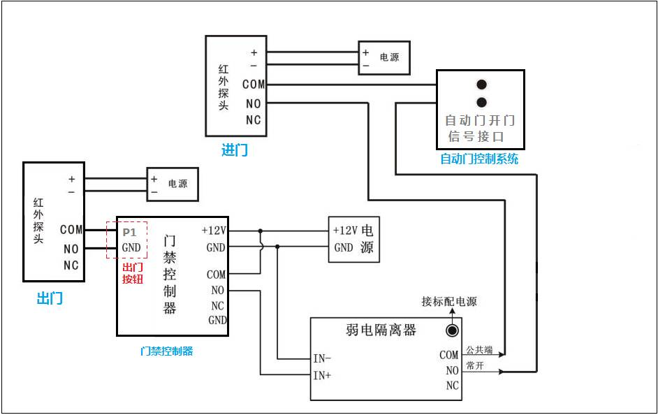 所以正確的實現(xiàn)門禁控制器控制自動門的接線方式是這樣的: